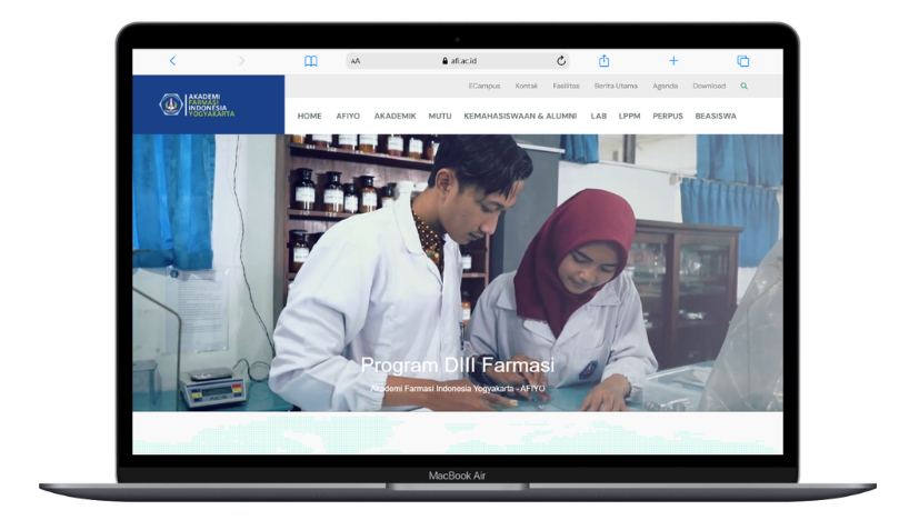 Dipercaya mengerjakan website Akademi Farmasi Indonesia Yogyakarta, kami menghadirkan platform digital yang modern, informatif, dan berorientasi pada konversi. Dirancang untuk menarik minat calon mahasiswa dan membangun kepercayaan sejak kunjungan pertama, website ini menjadi jembatan efektif untuk menjadikan AFIYO sebagai pilihan utama di bidang pendidikan farmasi